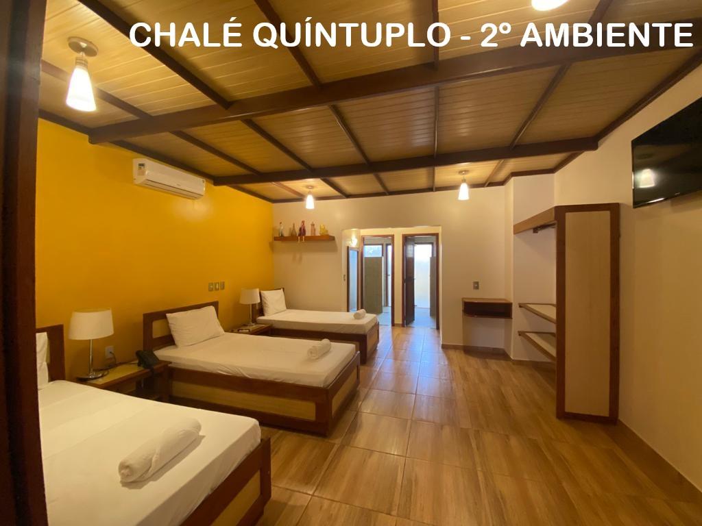 Chalé ideal para pequenos grupos ou famílias, com 68 m², acomodando até 4 pessoas. O chalé possui dois ambientes, separados por porta, sendo um banheiro em cada. Dispõe de 1 cama de casal e 2 camas de solteiro. Com ambiente aconchegante, varanda privativa e vista para o jardim, proporcionando conforto, tranquilidade e contato com a natureza durante a estadia.